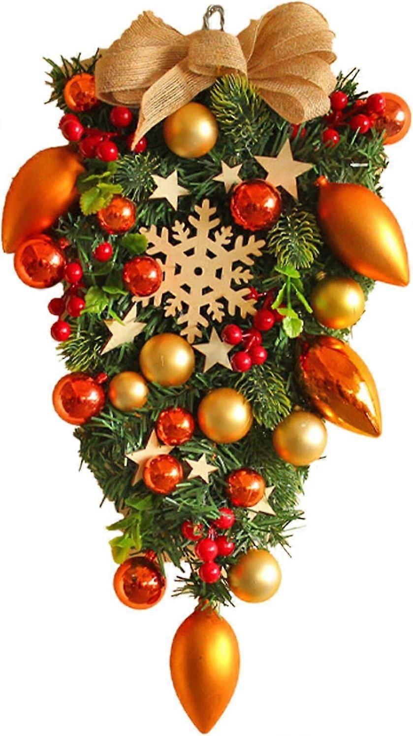 Christmas Teardrop Wreath for Front Door, Artificial Christmas Wreath Teardrop Garland, Christmas Window Scene Layout Decoration, with Bow Rattan