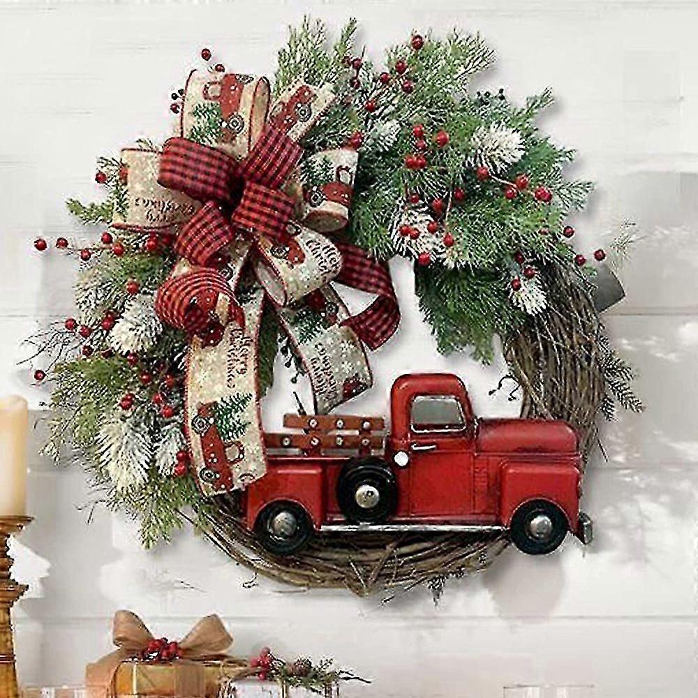 Christmas Wreath, Red Truck Christmas Wreath Decoration Door Hanging Farmhouse Decoration Christmas Bow Berry Christmas Decoration Thanksgiving Decora