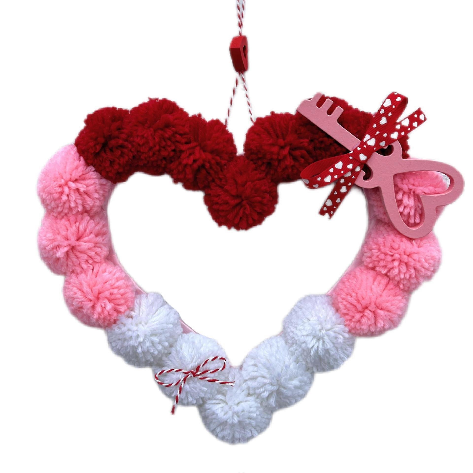 Valentine's Day Heart Wreath, Felt Pom Poms Heart Shape Wreath for Front Door, for Wedding Party Engagement Decorations