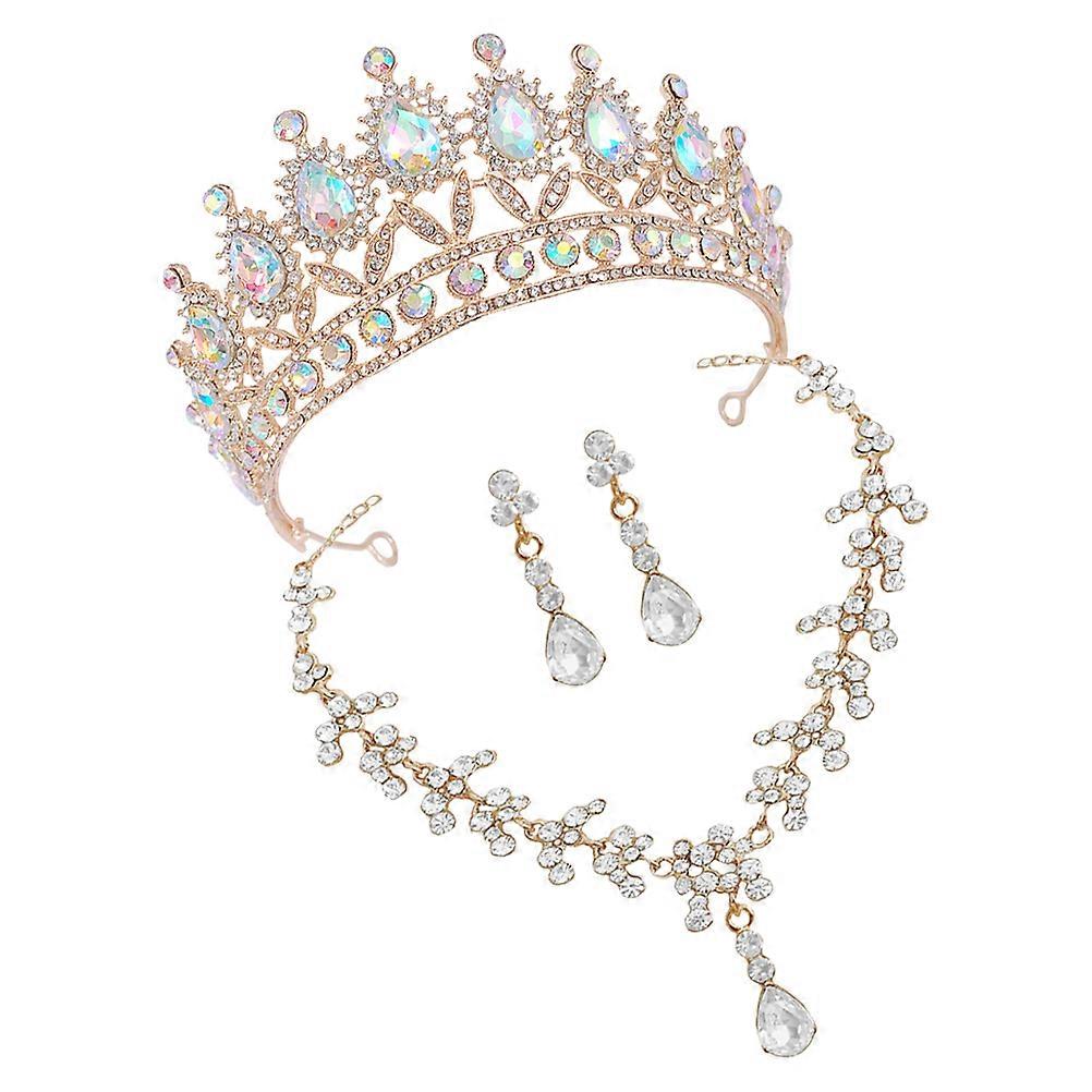 Vintage Rhinestone Inlaid Bridal Tiara Headband Set Enriched With Earrings And Necklace Ideal For Prom Parties And Weddings 1 Set