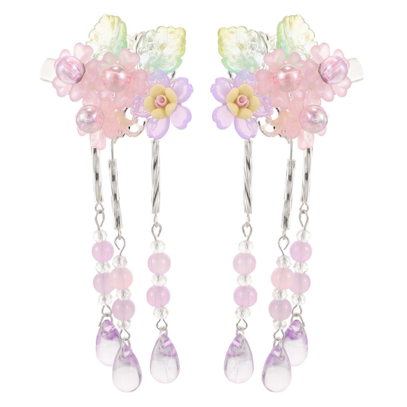 This adorable hair clip designed into chinese-style with a beautiful color, adds a touch of elegance and charm to any outfit. The headdress features delicate flower tassels that gracefully with every movement, creating a mesmerizing effect. Features - Color: Purple -Material:Alloy, resin, plastic - Size: 12.50X5.00X1.00cm/4.91X1.97X0.39in - Chinese hair accessories are sweet are perfect for creating various adorable looks. - These flower hair clips are sure to add a touch of elegance and charm to any hairstyle. - Hanfu hair accessories with flower tassels can be given as a gift to your daughter, adding a festive atmosphere. - Suitable for formal and casual occasions, the flower hair clips are comfortable to wear and not easy to fall off. - Chinese style hanfu headwear features a beautiful floral decoration design with tassels that with every step. Package list: 1 x pair of hair clips