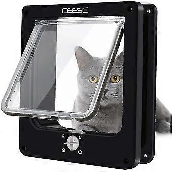 باب الحيوانات الأليفة المغناطيسي Cat Flap مع قفل دوار 4 اتجاهات للقطط ، البسيسات (أسود متوسط) _