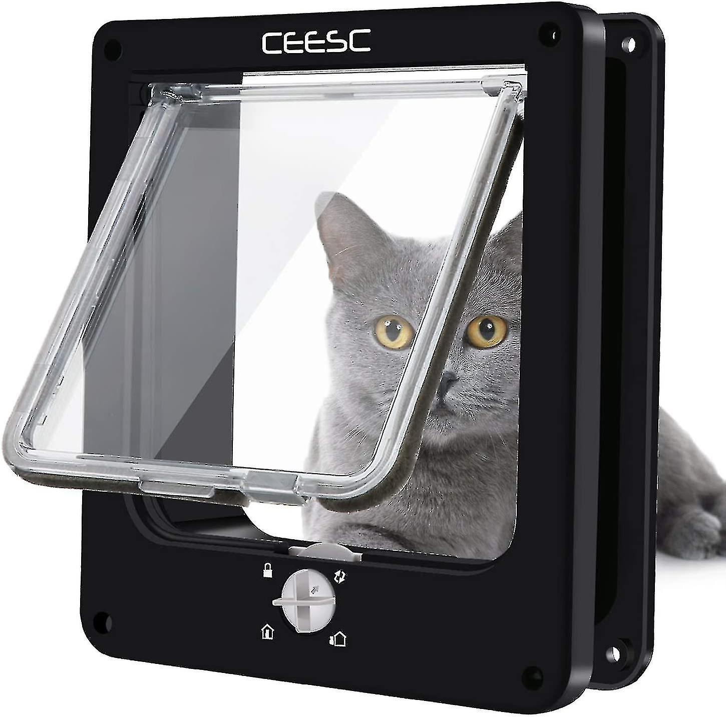 Cat Flap Magnetic Pet Door with Rotating 4-Way Lock for Cats, Kittens (Medium Black)
