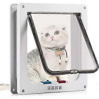 Cat Door with Magnetic 4 Way, Pet Door for Cats and Small Dogs, Cat Door with Tunnel (M-19.7x19x5.5 cm, White)