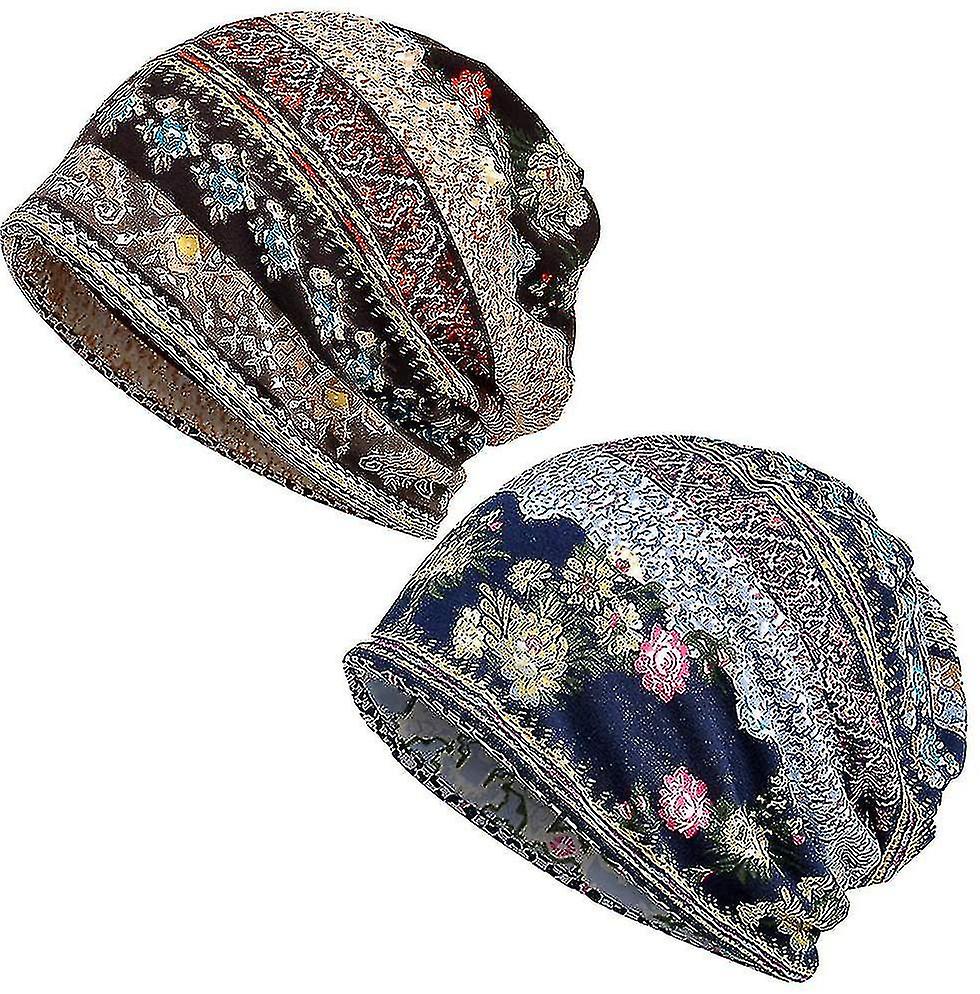 Baggy Slouchy Beanie Chemo Hat Cap Slouchy Snood Hat Cancer Headwear For Women,2 Pcs