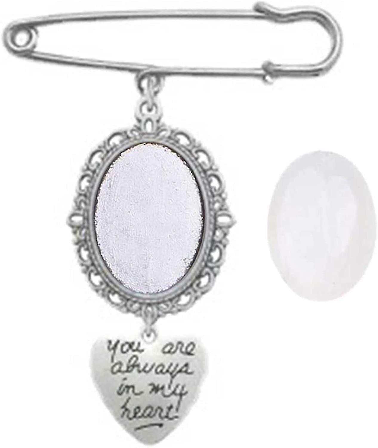 Wedding Bouquet Photo Lapel Pin Round Brooch for Groom Bride with Heart Pendant Jewelry Gift Metal No Gemstone