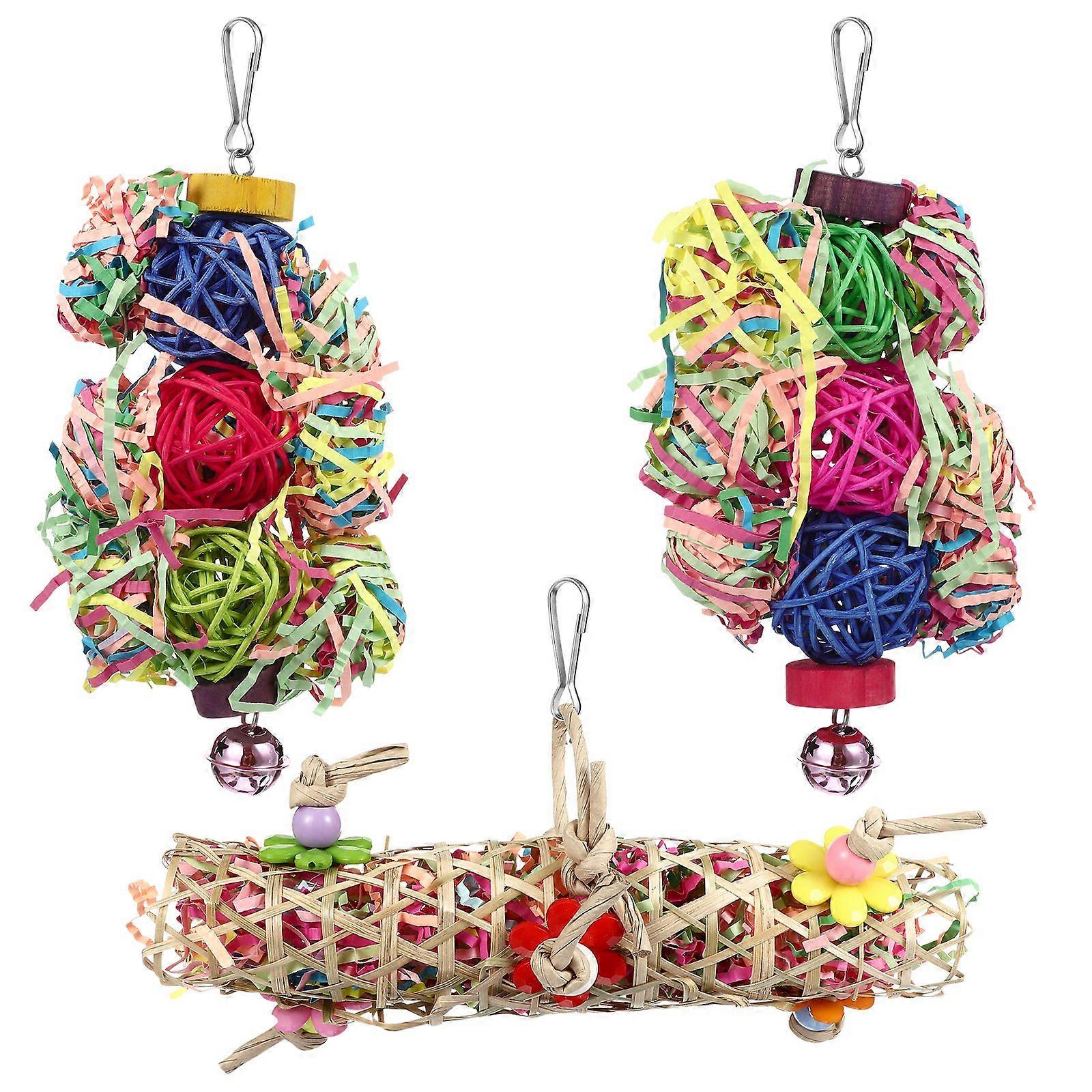 Balacoo 3 Pcs Rattan Balls Parrots Bird Chewing Toys Parrot Cage Shredder Toy Foraging Hanging Toys for Small Parakeets Cockatiels Love Birds