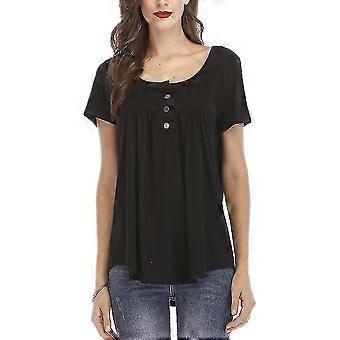 Plus Size Women Plain Buttons T-shirt Short Sleeve Casual Crew Neck Tops-c