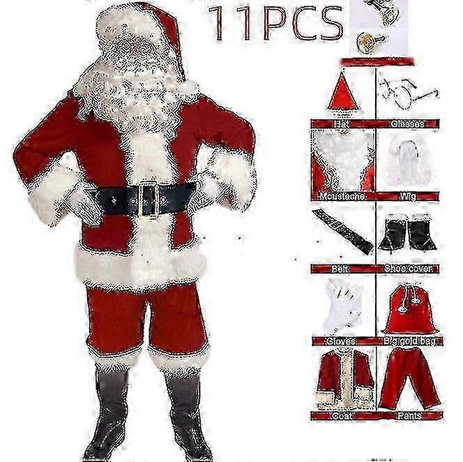 Men's Santa Suit Adult Christmas Costume Party Outfit with Belt and Hat