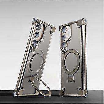 Frameless for Samsung Galaxy S24 Case with Invisible Magsafe Kickstand, Bezel Less Metal Slim Hard Shockproof Case with Ring Holder