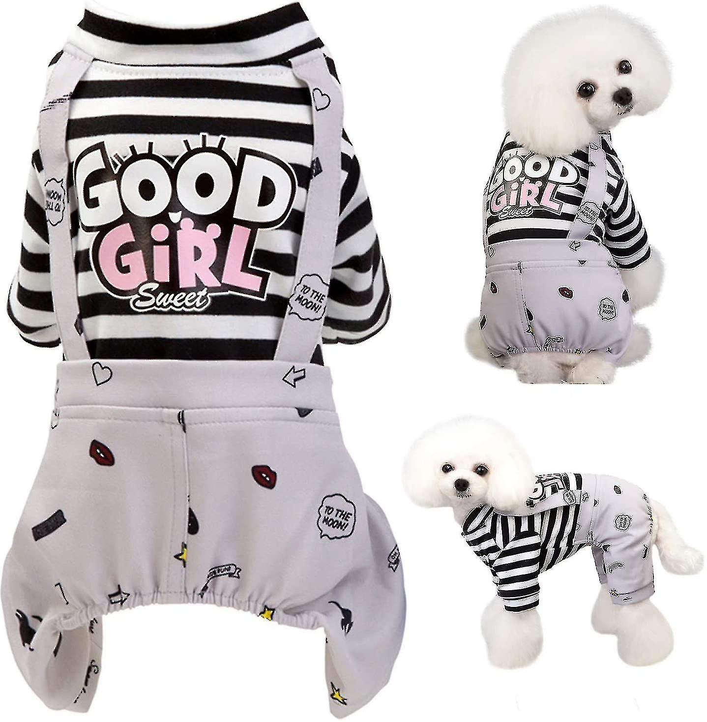 Dog Jumpsuit, Striped Puppy Pajamas, Cute Doggie Kitten Onesies Pjs Jumpers, Soft Cotton Shirt, 4 Legs Apparel Pet Clothes Outfits For Small Medium