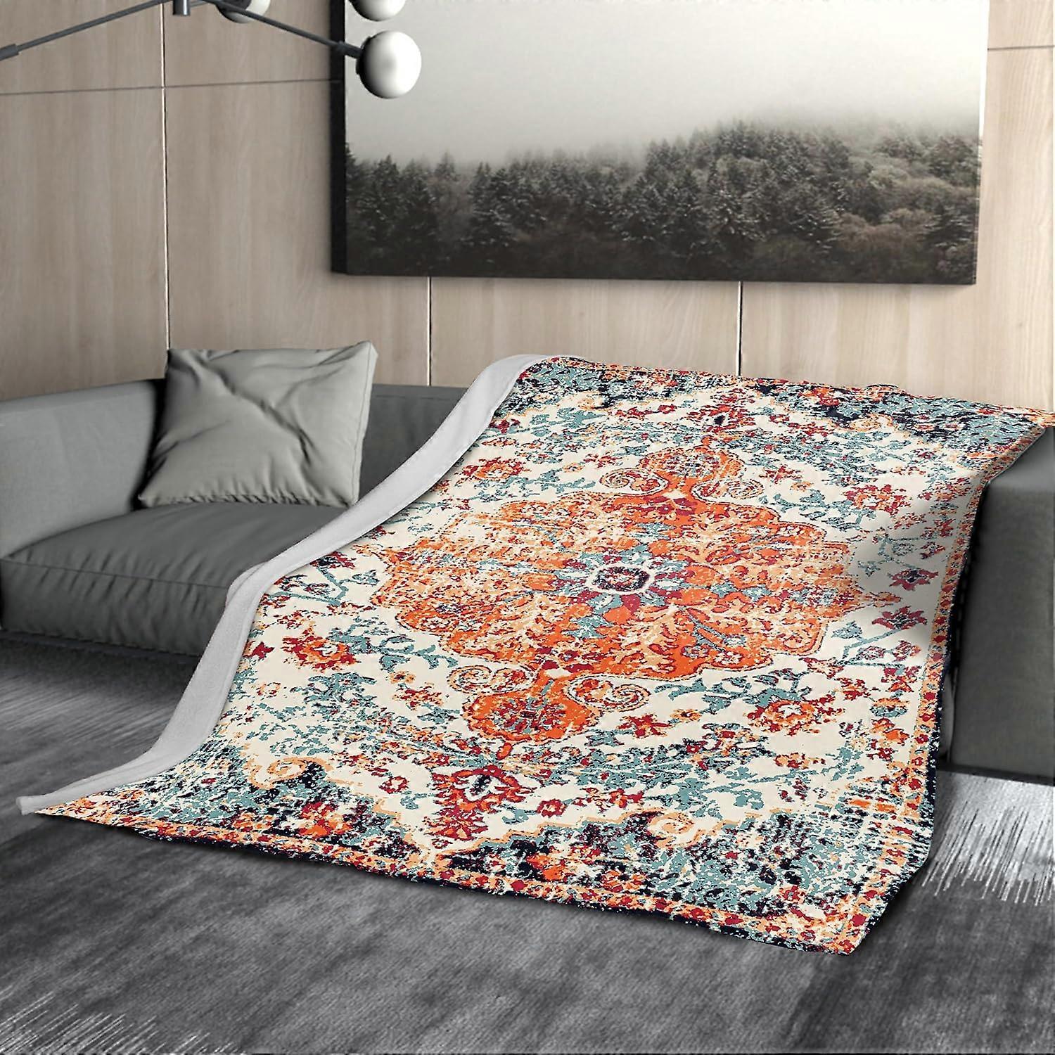 Orange Blue Boho Blanket Soft Flannel Lightweight Rust Teal Bohemian Throw Blanket Cozy Warm Vintage Aztec Carpet Blankets All Seasons Living Room Dec