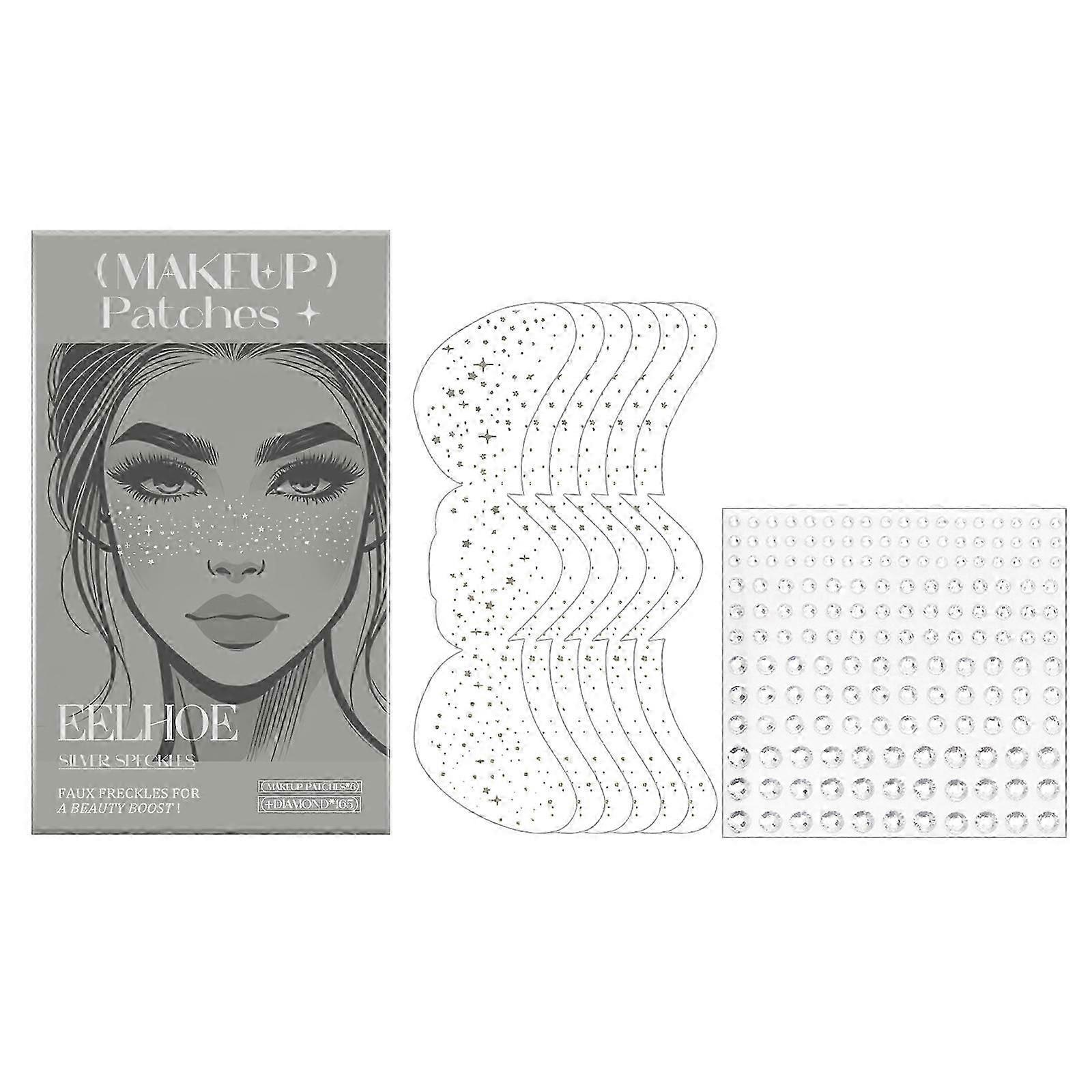 Glitter Freckles+Diamond,6PCS Glitter Freckles Face Temporar Tattoo+165pcs Diamonds, Waterproof Sparkle Freckles Freckle Tattoo, Cute Face Glitter Mak
