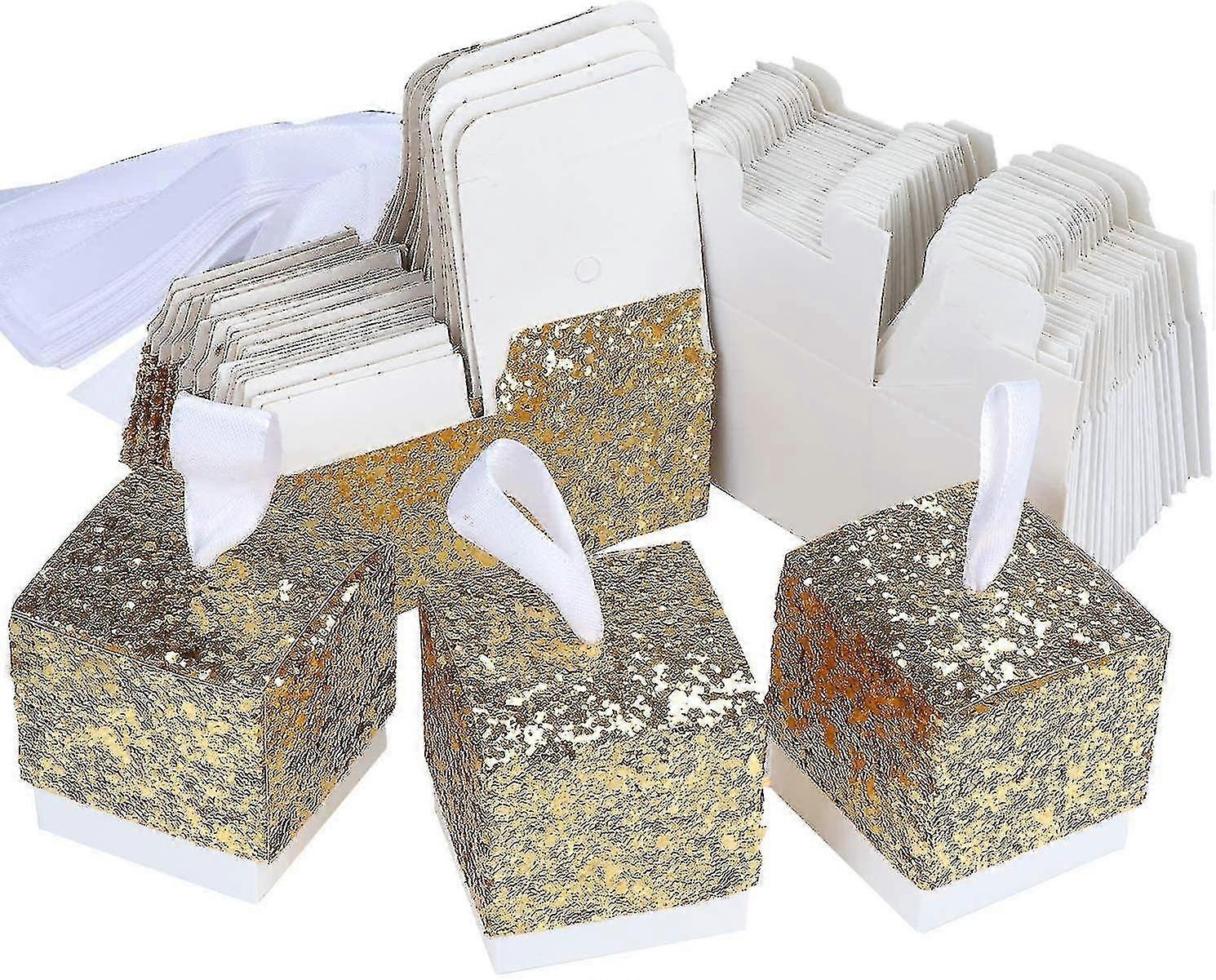 Glitter Paper Candy Box, Wedding Glitter Gift Box, Creative Paper Party Gift Box - Golden 25pcs