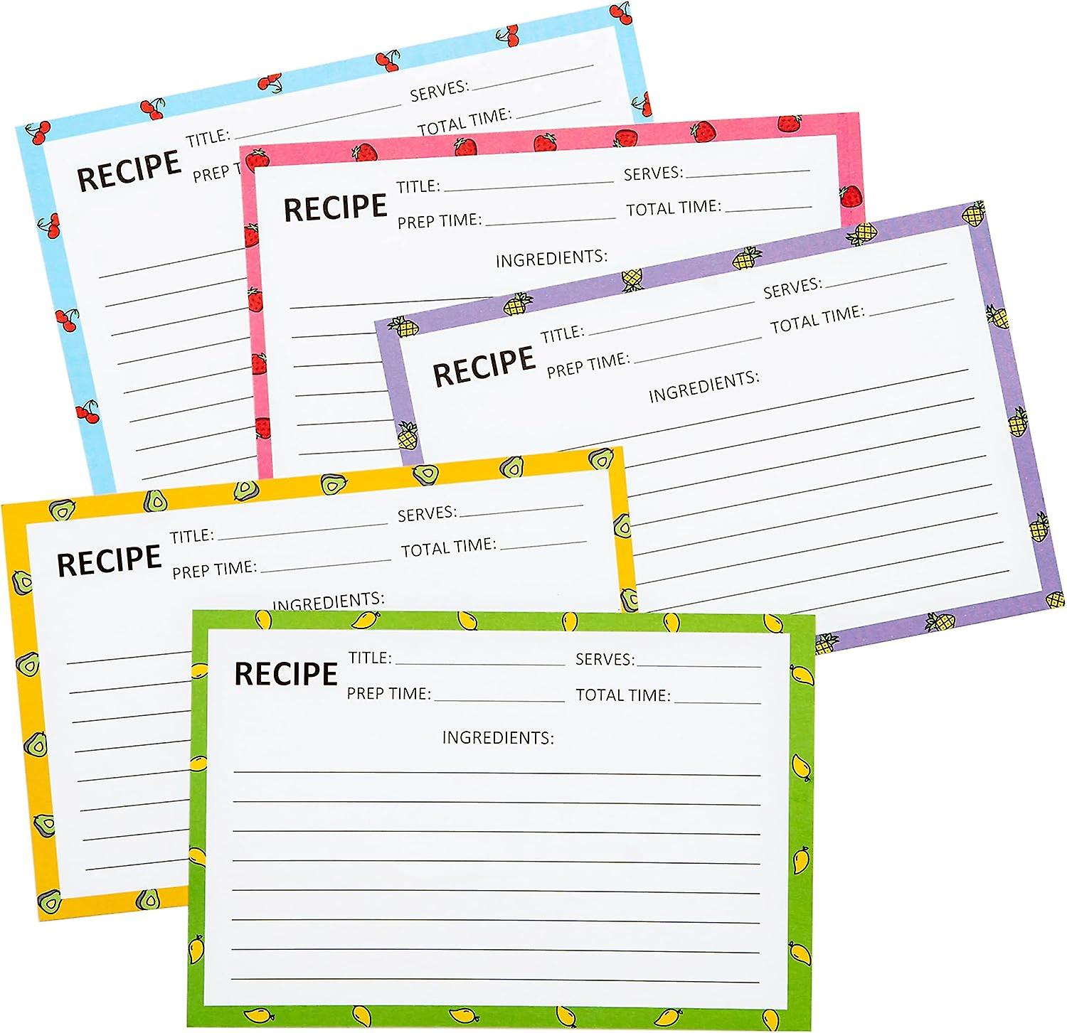 Recipe Cards - 50 Pcs, 4x6-inch Double-sided Thick Card Stock With 5 Fruit Designs, Perfect For Recipe Binder, Recipe Box, And Gifts