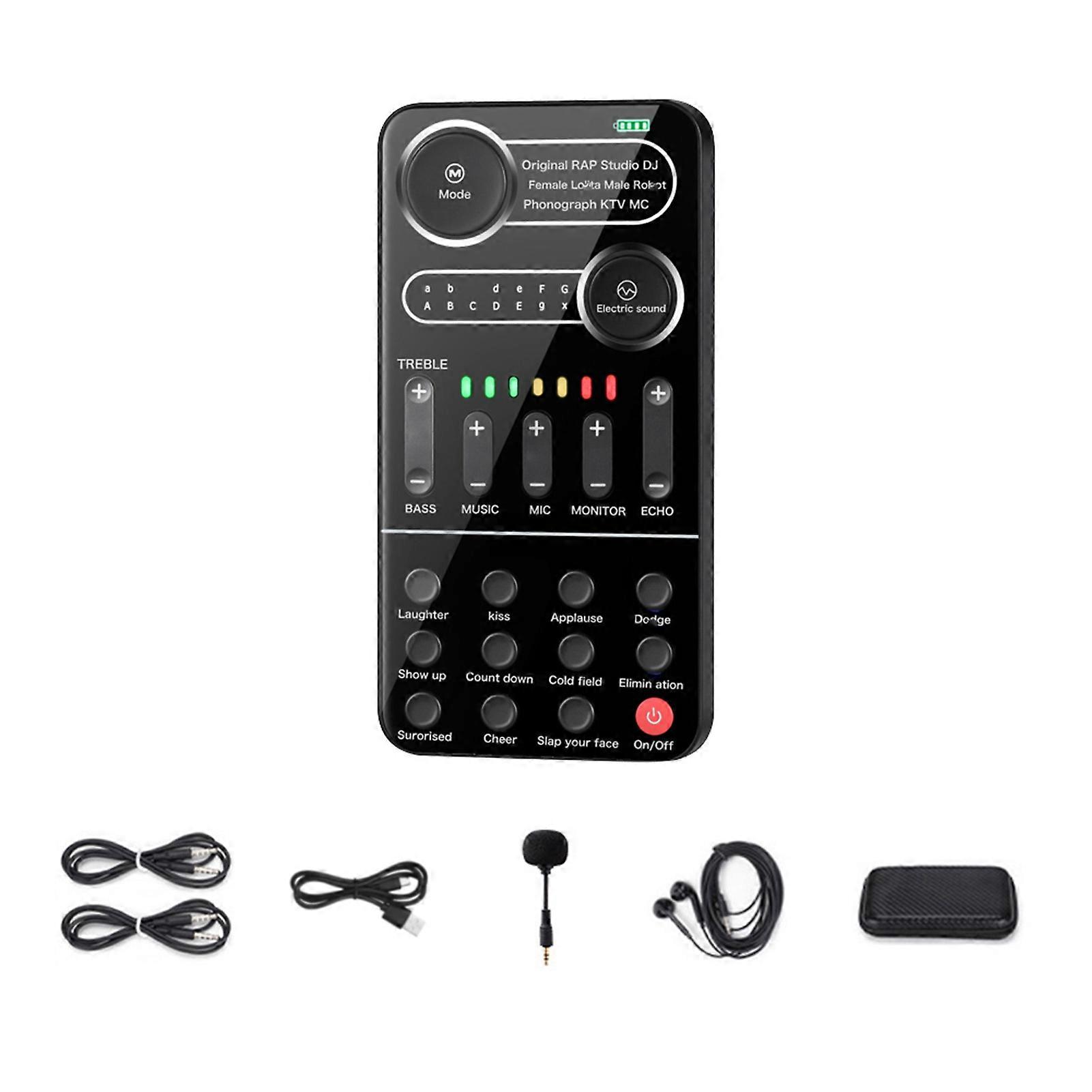 Portable Voice Changer External Sound Card with 9 Sound Effects, Mini Live Broadcast Microphone for Phone Computer Gaming Streaming