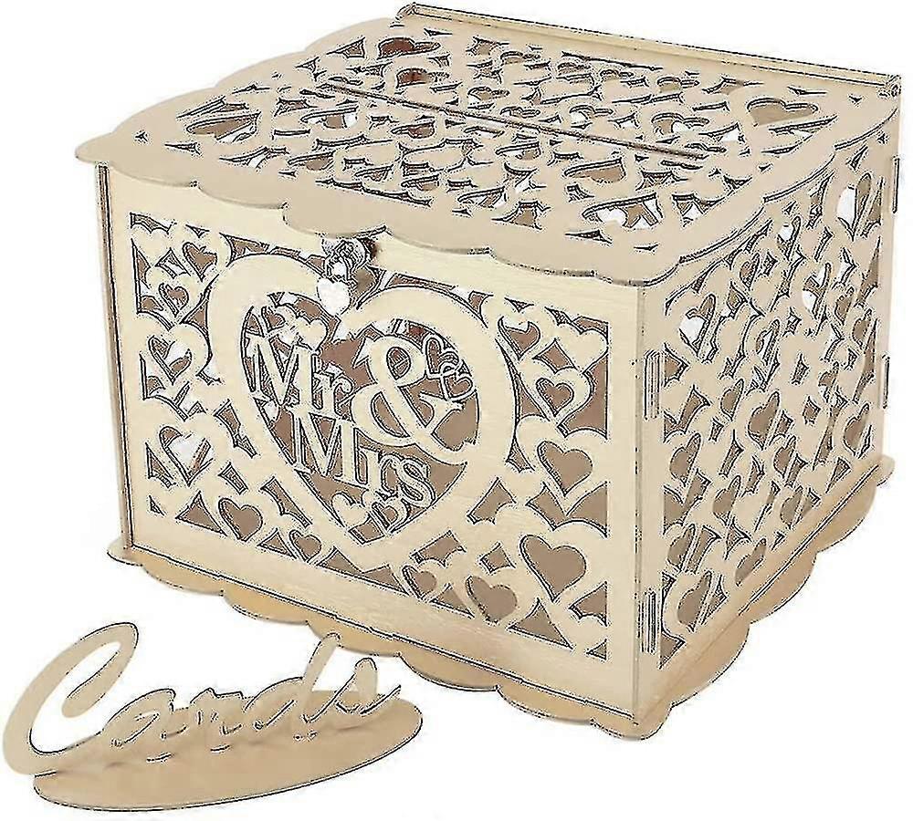 Wedding Gift Card Money Box Holder With Sign, Large Rustic Wood Wooden Diy Envelop Gift Card Boxes With Lock