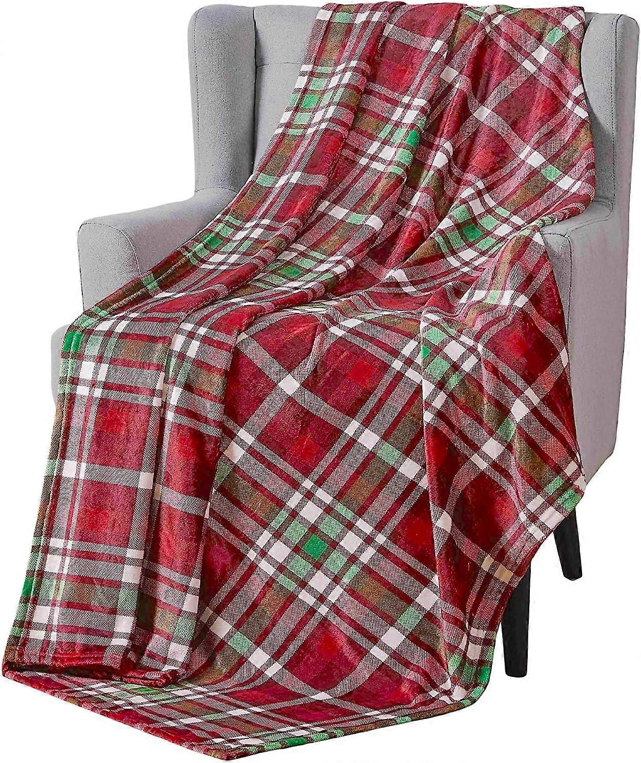 Plush Tartan Plaid Throw Blanket: Christmas Winter Design, Burgundy Red Green Ivory