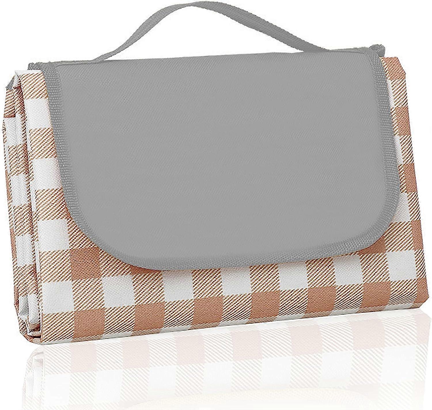 Outdoor Picnic Blanket, Foldable Waterproof Sand Mat, Extra Large Picnic Blanket 60" x 80" For Family - Brown Striped