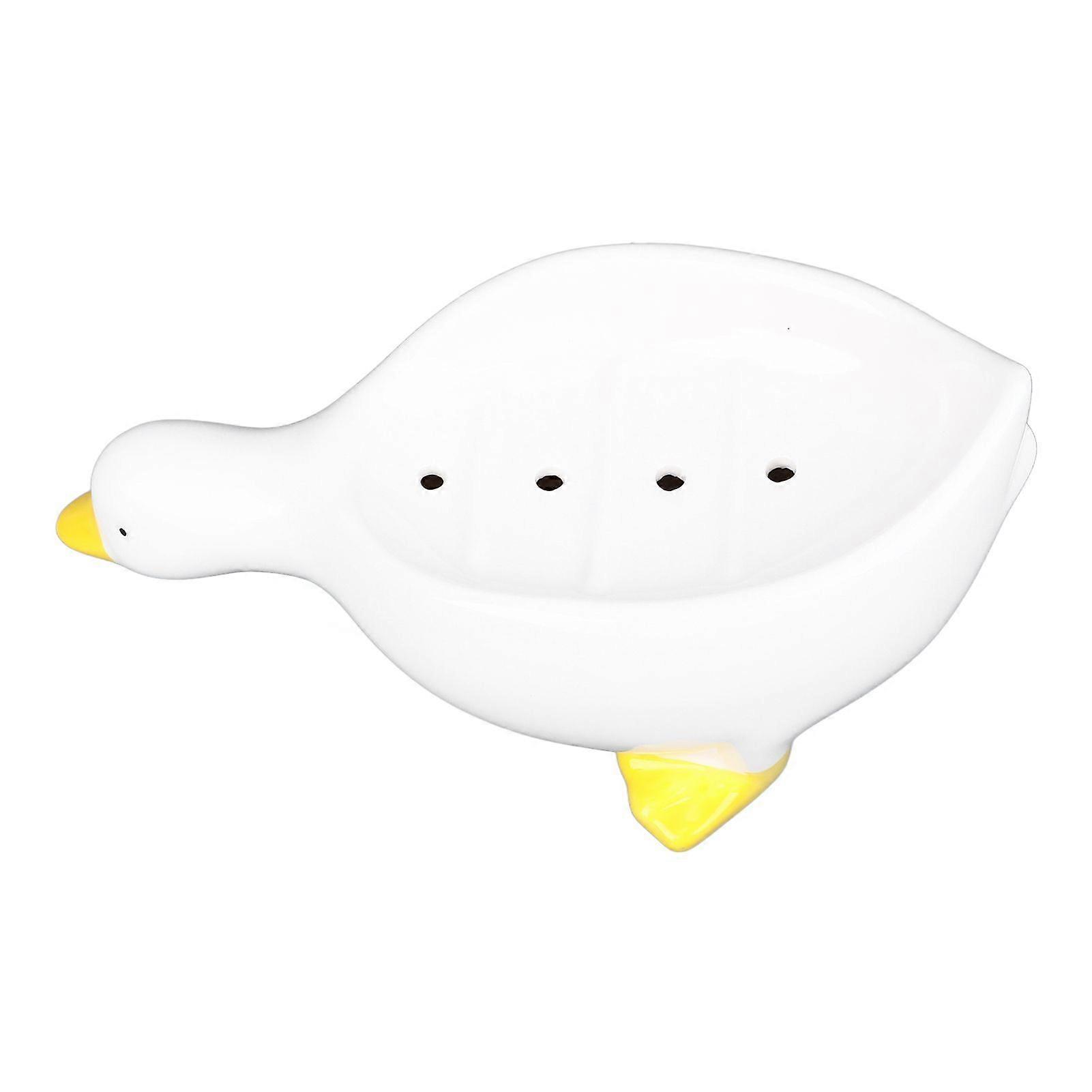 Duck Ceramic Soap Dish Cute Duck Animal Shape Self Draining Soap Holder with Drain for Shower Bathroom Kitchen