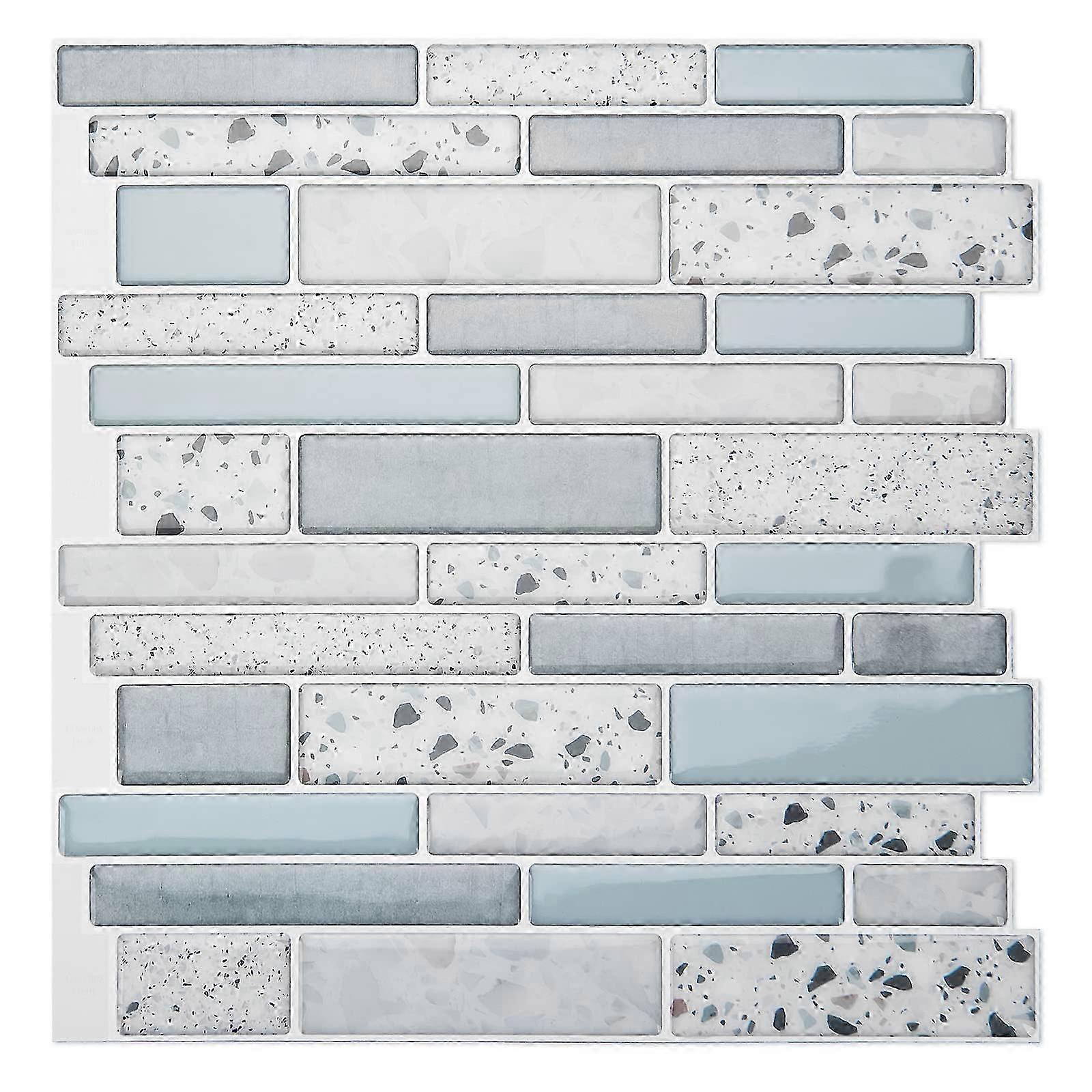 Peel and Stick Wall Tiles Splashback Self Adhesive Wall Tiles Stone Design, 10 Sheets, Marble, 30x30cm (Blue)