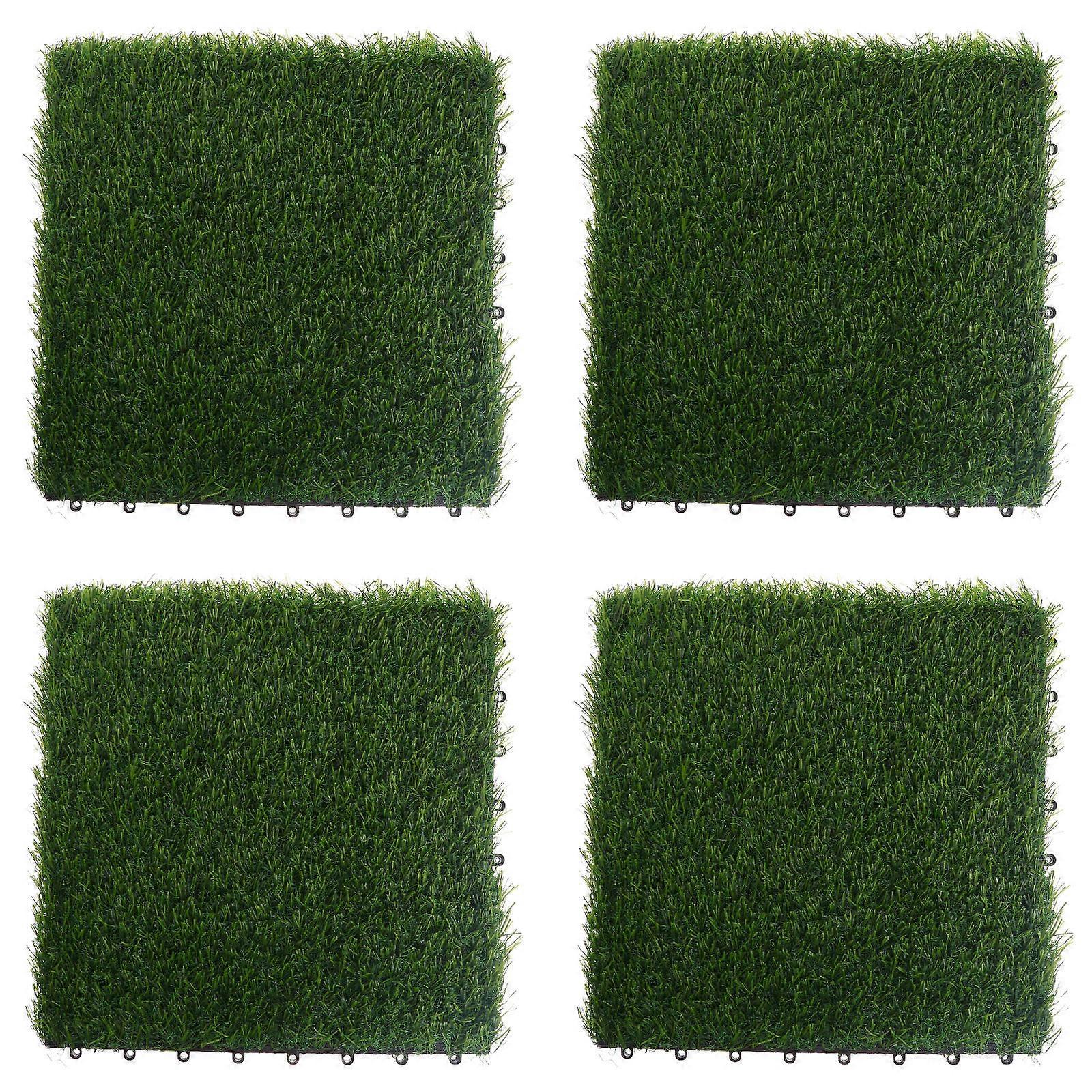 Fake Grass Turf Tiles Excellent For Garden And Outdoor Decoration With Realistic Shape High Temperature Resistance 4Pcs
