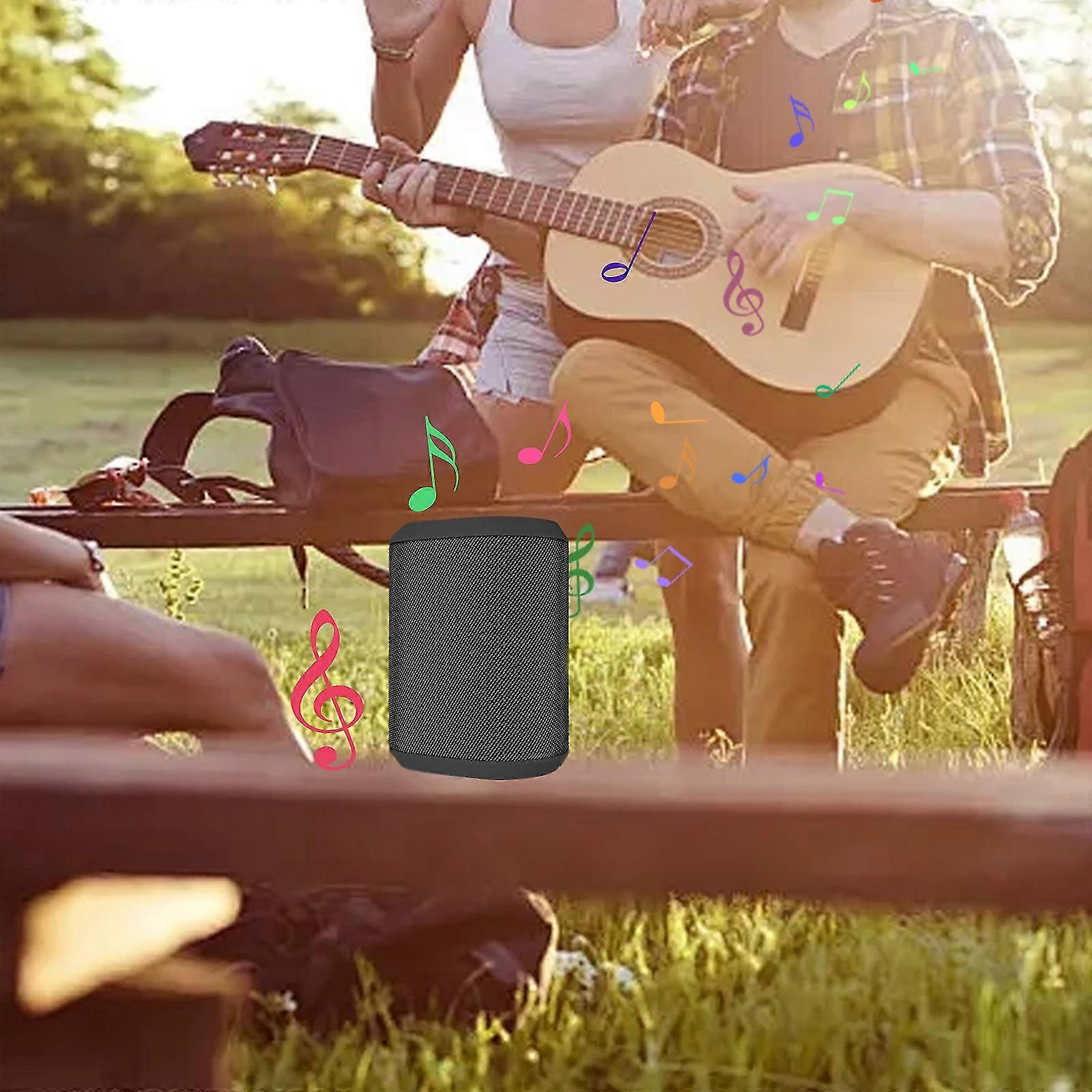 Bluetooth Audio Cloth Speaker Plug-in Mini Stereo Outdoor Bluetooth Speaker Stylish External Light Long Battery Life Device Interconnection Product Parameters: Product name: fabric speaker Material: ABS Colour: black Rated voltage: 5V Battery capacity: 1200mAh Connection: Bluetooth connection Package size: 5.51*4.72*3.15 in / 14*12*8cm Gross weight: 0.84 lb / 380g Product Description: Multi-mode Music Playback FunctionThis Bluetooth stereo is equipped with high compatible and diversified playback modes, supporting Bluetooth connection, AUX cable input, memory card playback, and FM radio function. Users can flexibly choose the playback mode that suits their needs. Whether it is playing the latest popular music through mobile phone Bluetooth, or using AUX cable to connect non-Bluetooth devices, or inserting a memory card to listen to your carefully chosen song list, or even listening to a radio programme through the FM function, this speaker can meet your various listening needs. Dusts and Waterproofs DesignAdopting advanced dirt technology, this bluetooth stereo achieves an excellent level of protection, which can effectively block the intrusion of the dirt and water, and protecting the internal components from being damaged. This makes the speaker perfect for use in a variety of outdoor environments, whether it's on the beach, by the pool, or unexpected rain encountered while camping. This feature greatly enhances the speaker's usage scenarios and durability. Ultra-long battery lifeThis speaker is equipped with a high-efficiency battery that supports up to 10 hours of playback time, which meets the demand for long-time continuous use. Whether for outdoor activities, travelling or family gatherings, this speaker is able to provide long-lasting and stable music playback, so that your every listening is not limited by time and you can enjoy music feast. Interconnect TechnologyWith True Wireless Stereo technology, you can wirelessly connect two speakers of the same model to achieve the separation of left and right channels, creating a more powerful stereo sound. This technology allows for a richer musical expression and a more immersive and expansive listening experience, both indoors and outdoors, making it especially suitable for music lovers and users seeking sound. Lightweight Portability and Stylish AppearanceThe combination of cloth material design not just enhances the durability and protection of the speakers, but also gives the speakers a more stylish and simplistic appearance. Compact size and light weight make the speakers perfect for carrying around, whether it's for daily commuting, outdoor adventures or parties, it can easily become the companion of your music life. Item list: Bluetooth speaker *1 Instruction manual *1 Charging cable*1