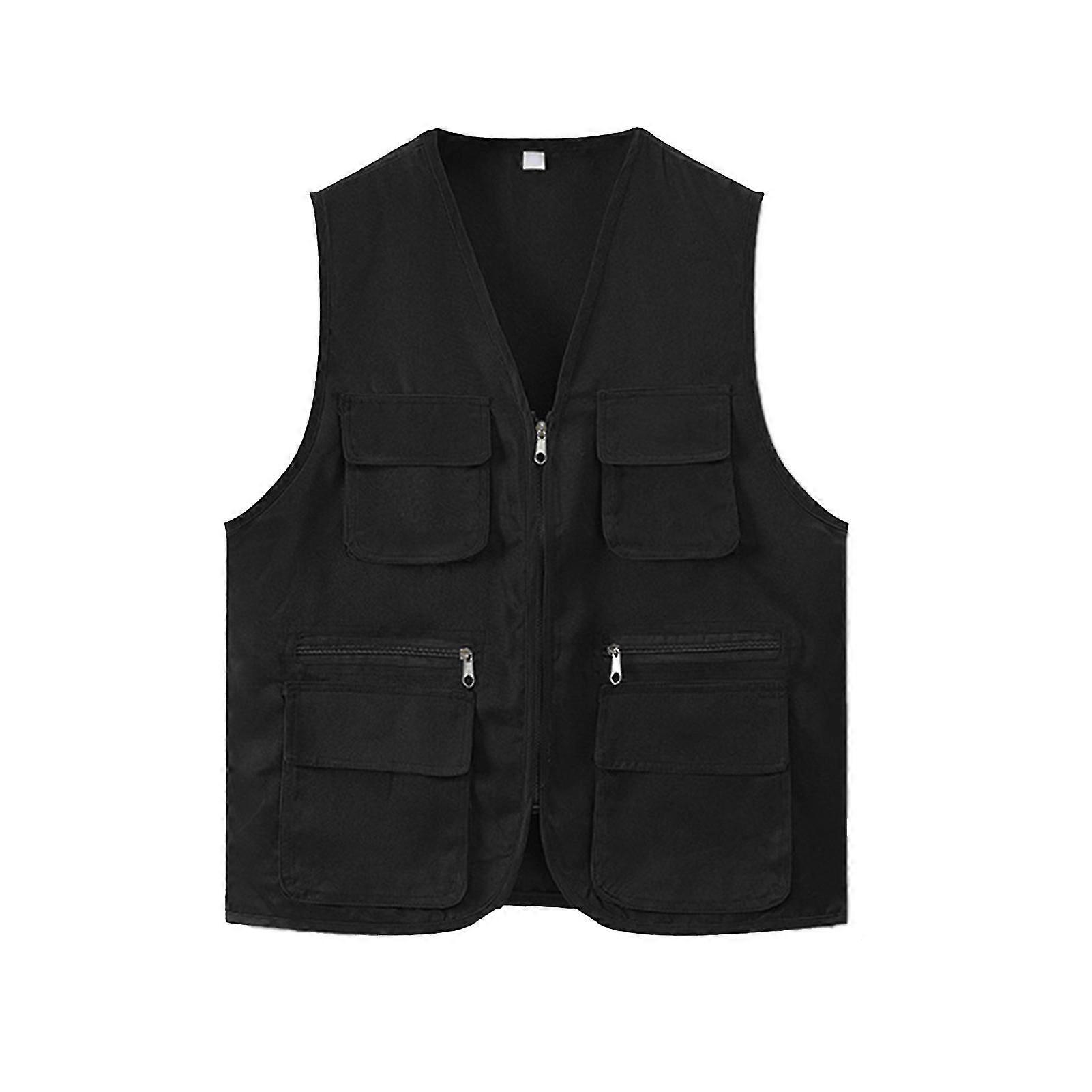 Solid Color Multiple Pockets Vest Coat V-neck Zipper Placket Thin Unisex Outdoor Photographer Volunteer Waistcoat Hiking Clothing