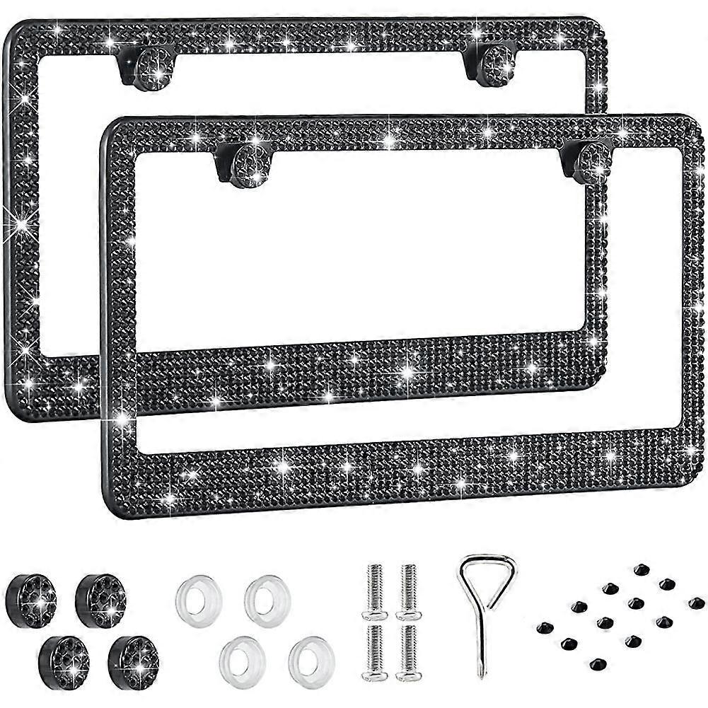 Bling License Plate Frame For Women, 2 Pack Premium Stainless Steel Rhinestone License Plate Holder, Handmade Glitter Crystal Lincense Plate