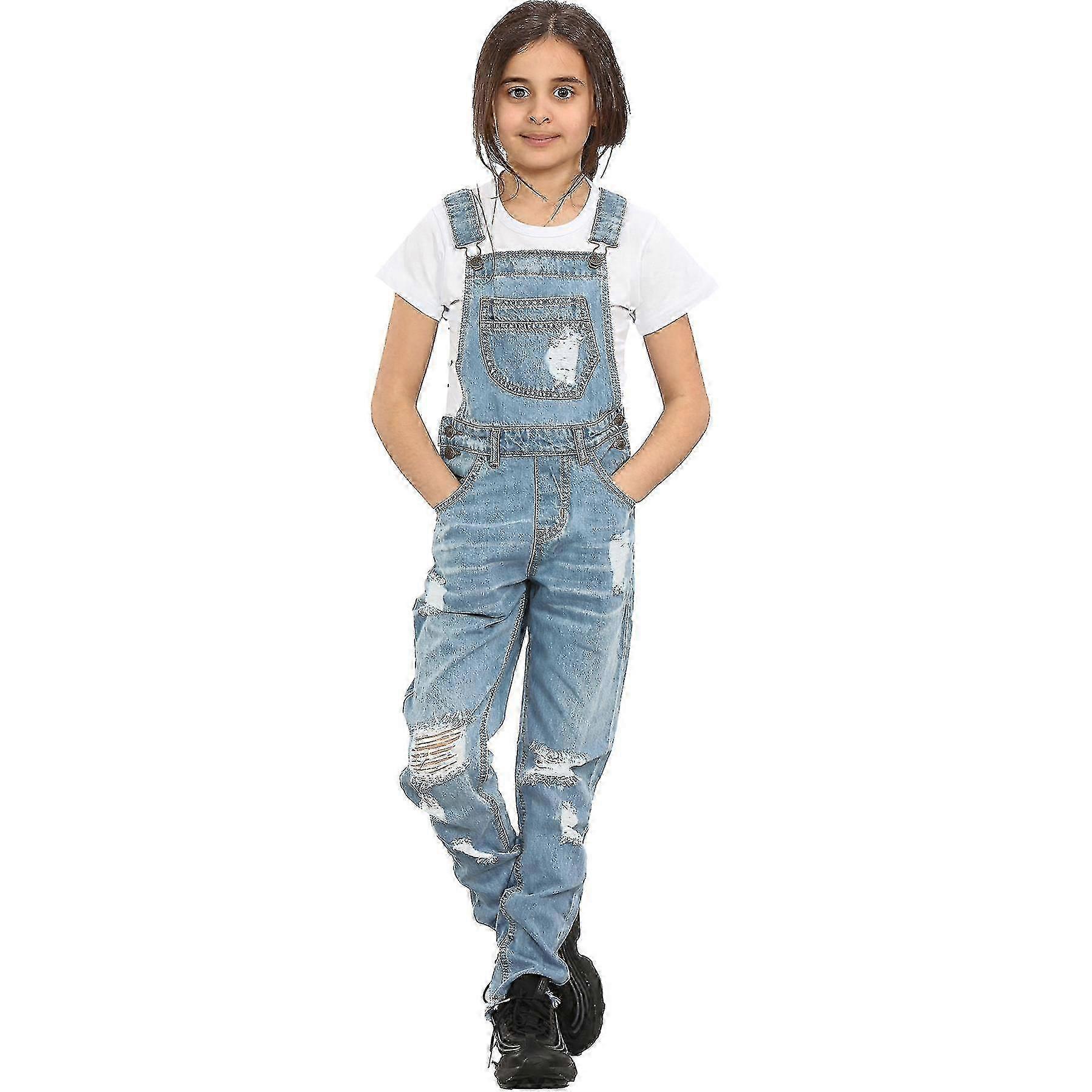 Girls Denim Dungaree Ripped Jeans Overall Jumpsuit for Kids