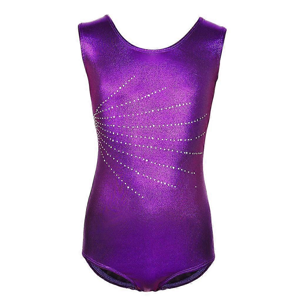 Girls One Piece Gymnastics Leotard Costume Metallic Sleeveless Bodysuit 12 Purple