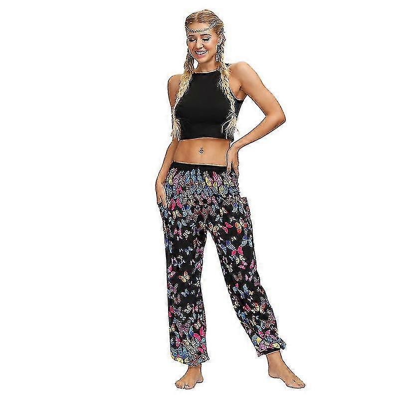 Women's Harem Pants, High Waist Yoga Boho Trousers With Pockets