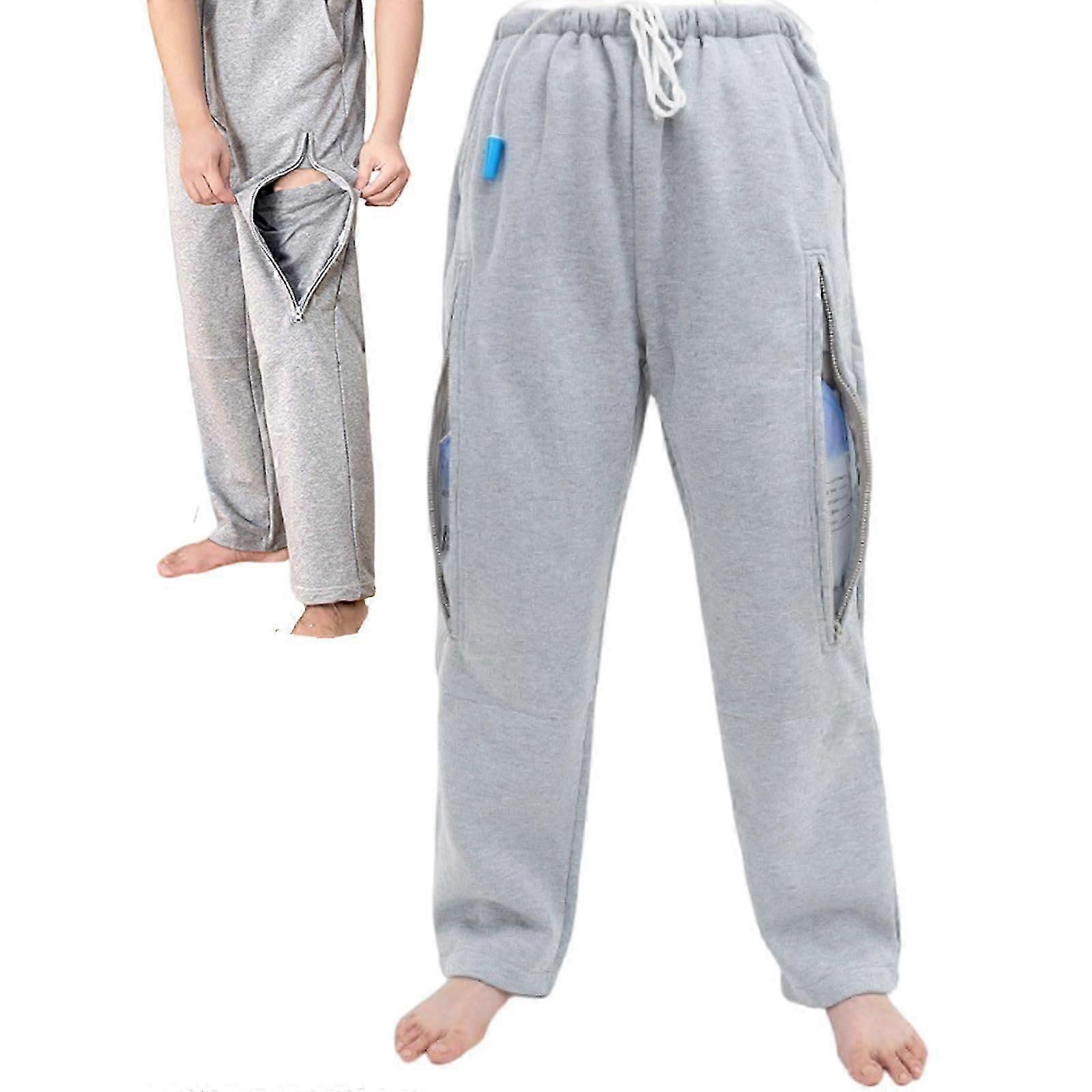 Catheter Leg Bag Trousers, Urine Bag Holder Trousers with Double Zip Pockets, Catheter Bag for Nephrostomy, Cystostomy, M