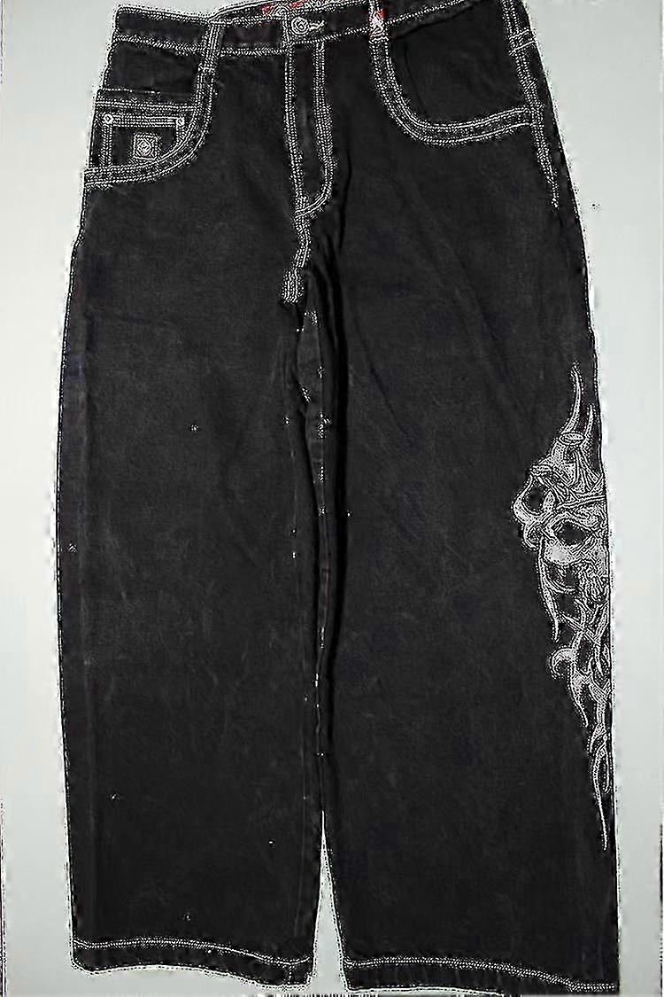 Y2K Gothic Wide Trousers - Oversized Baggy Black Denim Jeans with Skull Graphic for Men & Women - Trendy Harajuku Hip Hop Streetwear