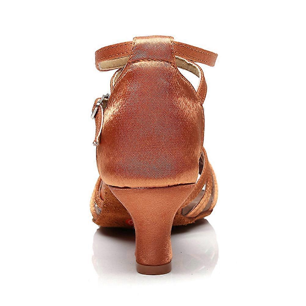 Brown Women's Latin Dance Shoes with Adjustable Buckle for Comfort and Stability 5cm