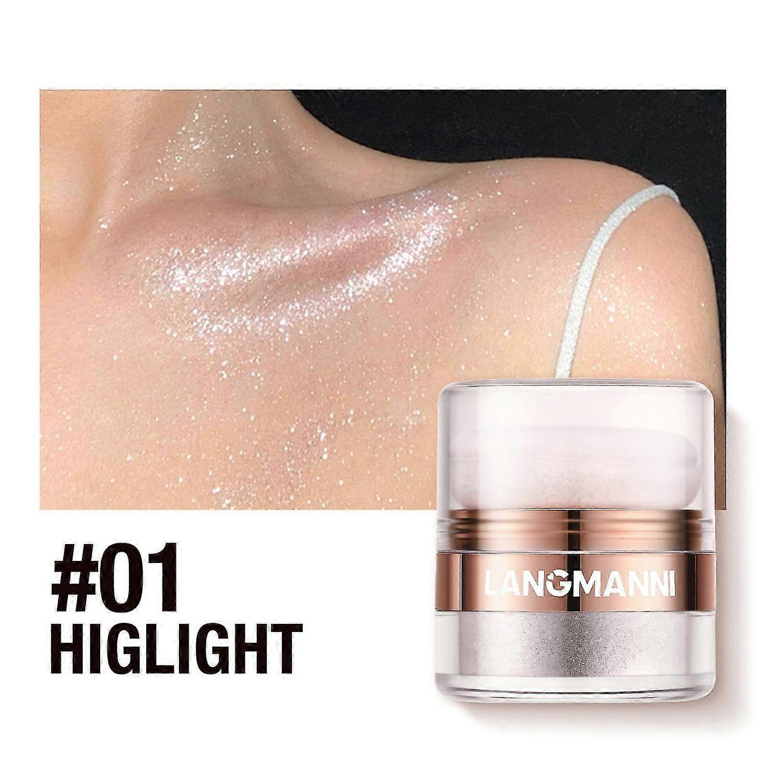 Body Highlighter Powder, Face Brightening Shimmer Body Glitter Contour Patting Powder, Sparkling Blush Highlighter Powder for Face Eyes Body Glow Make