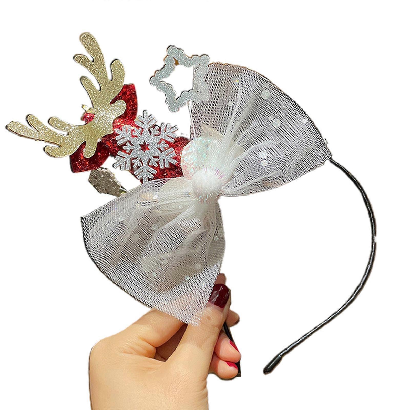 Pompom Antlers Headbands Christmas Elk Bows Hair Band Lace Santa Hat Hair Hoop Novelty Photo Props Party Supplies 7