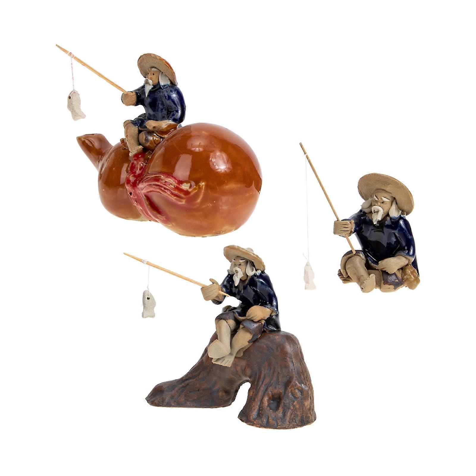 Bonsai Ornaments Fisherman Shape Figurine For Fish Tank Decor 3Pcs