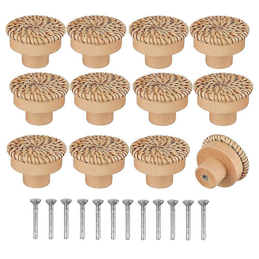 Boho Rattan Dresser Knobs Round Wooden Drawer Knobs Handmade Wicker Woven and Screws for Boho Furni