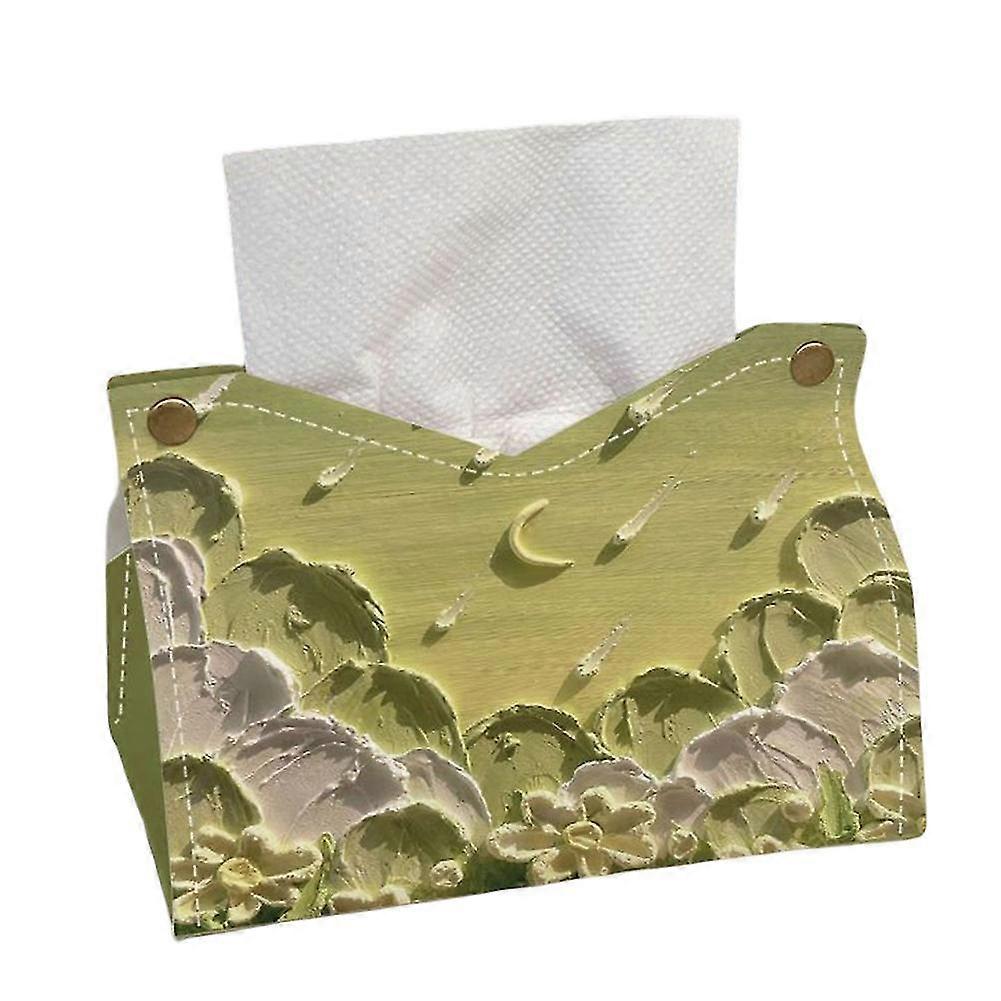 Pu Leather Tissue Box Large Capacity Napkin Holder Oil Painting Pastoral Tissue Storage Box Foldable Car Tissue Holder
