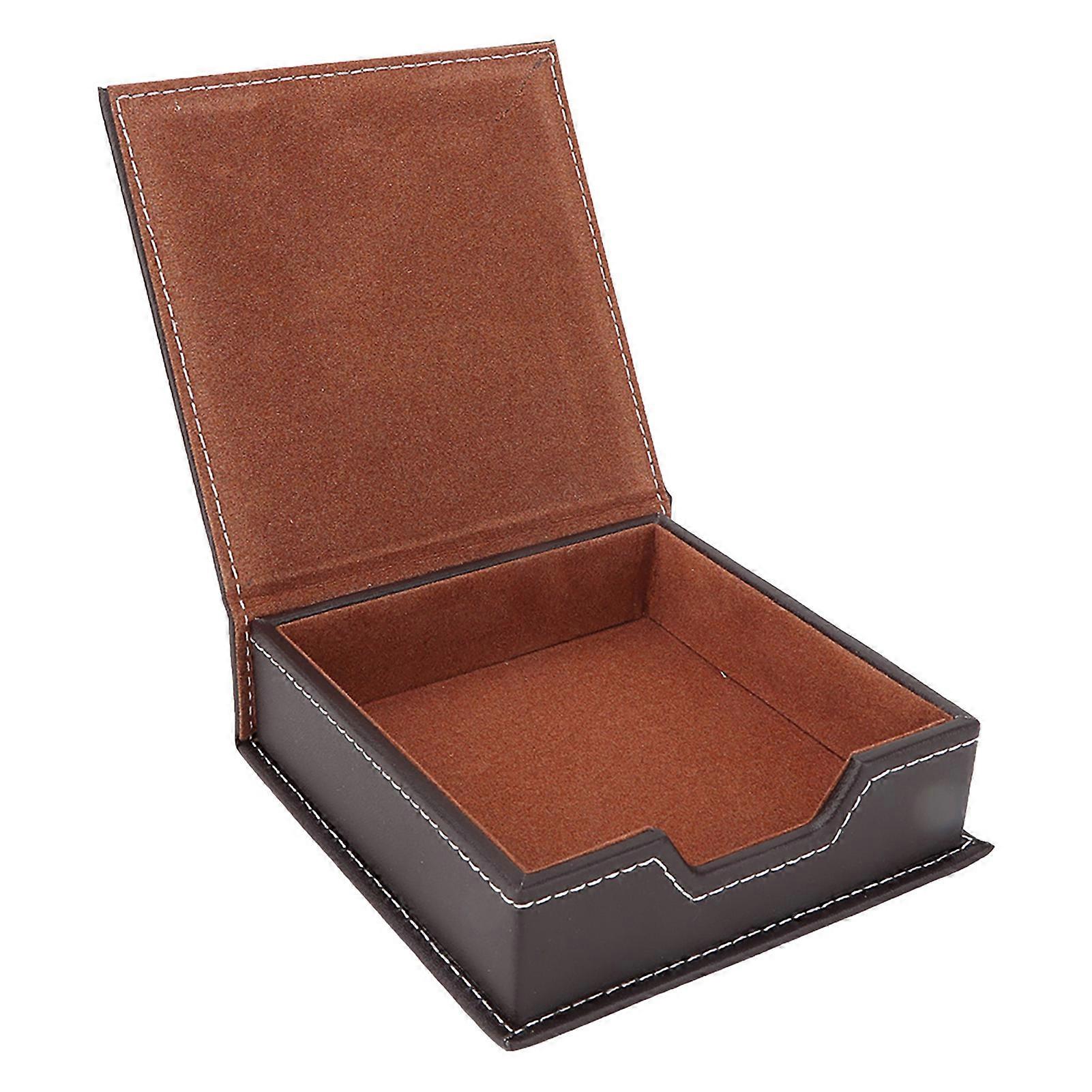 PU Leather Memo Sticky Note Storage Box Card Holder Office School Organizer Supplies(Brown)
