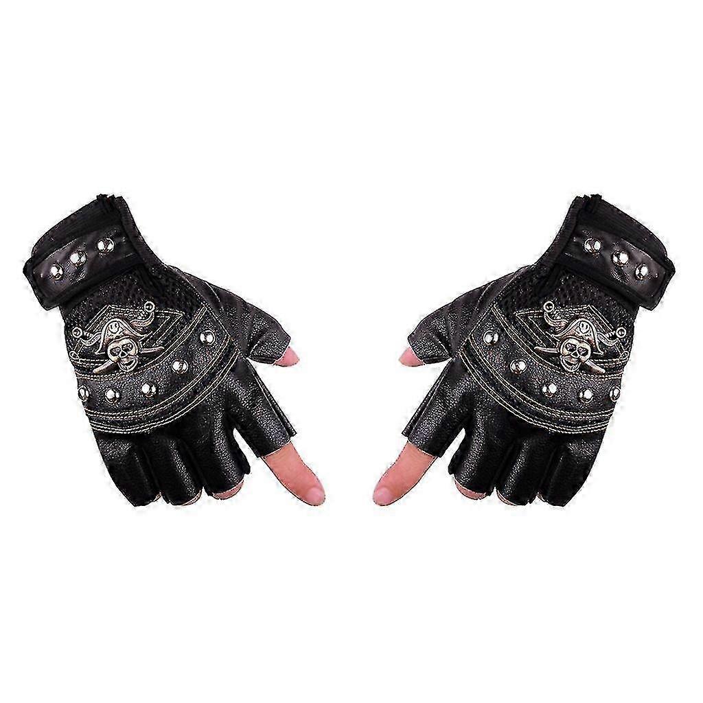 Pu Leather Studded Half-finger Pu Driving Motorcycle Gloves Pirate Skull