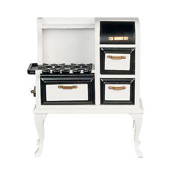 بيت الدمى 1920 أسود & موقد أبيض فرن هولندي أثاث مطبخ مصغر
