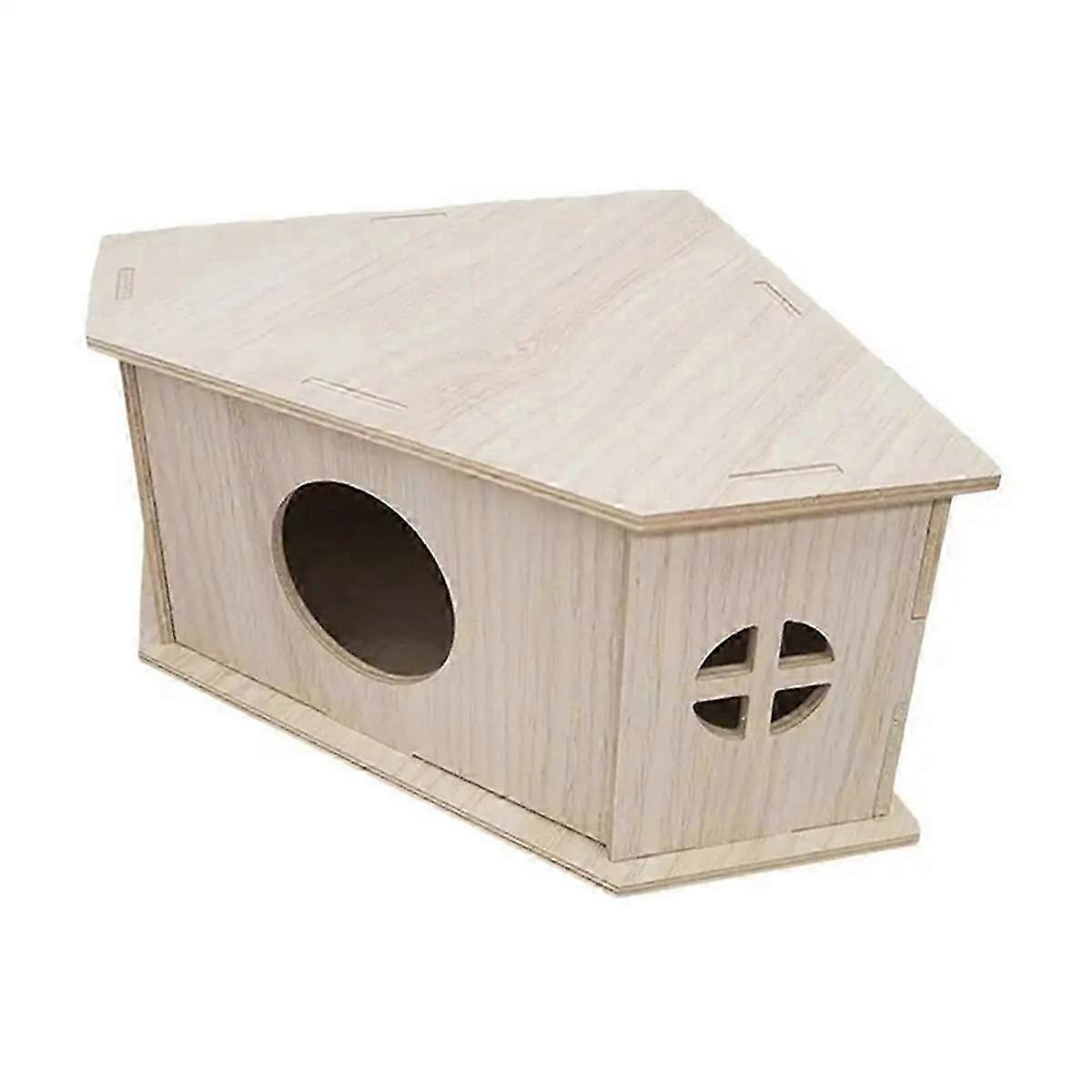 1. : Crafted from natural solid wood, this hamster house promotes a healthy lifestyle, being skin-friendly and harmless, allowing your pet to bask in the serenity of a nature-inspired habitat. 2.Stress-Reducing Retreat: Delight your furry friend with an exclusive wooden hamster house. Providing a quiet and private resting space, our unique triangular design and cozy one-bedroom layout helps hamsters relax, unwind, and enjoy their alone time. 3.Aesthetic Habitat: Our wooden hamster house fits in perfectly with any cage dcor, adding a of color and functionality to your pet's environment. It enhances the visual layers and natural beauty of the cage landscape while offering multi-functional landscaping that your pet love. 4.Sturdy Construction: Built with solid wood, this hamster house boasts a solid foundation that keeps it sturdy for long-term use. Preventing moisture buildup, it creates a dry and hygienic environment that's easy to maintain and enhances lasting protection. 5.Amplify Your Hamster's Fun: Watch as your hamster explores and hides in this wooden designed to enhance their innate instinctive behaviors. Make playtime more fun and interactive while deepening the bond with this enriching addition to your pet's mental world. Colour:Wood color Material:Wood Package Contents: 1 x Wooden Hamster House Only the above package content, other products are not included. Note: Light reflection and different displays may cause the color of the item in the picture a little different from the real thing. The measurement allowed error is +/- 1-3cm.