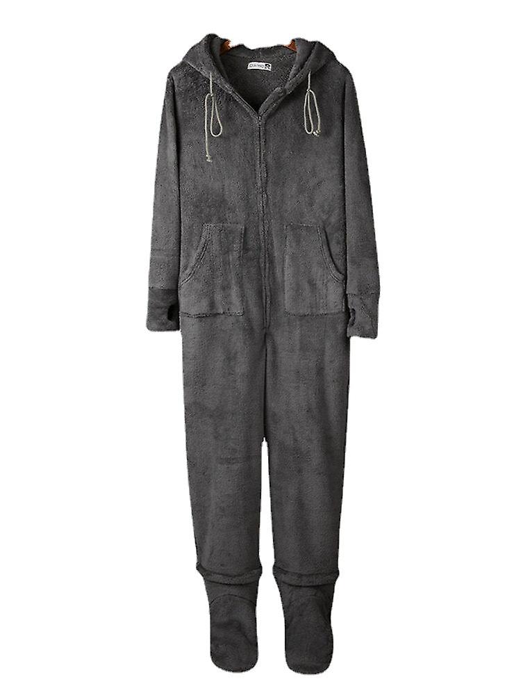 Men's Thick Flannel Hooded Onesie Pajamas With Thumb Holes And Socks - Thermal Loungewear
