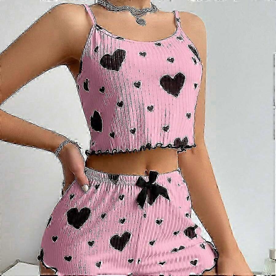Heart-shaped Printed Sweet Camisole Shorts Pajamas For Women
