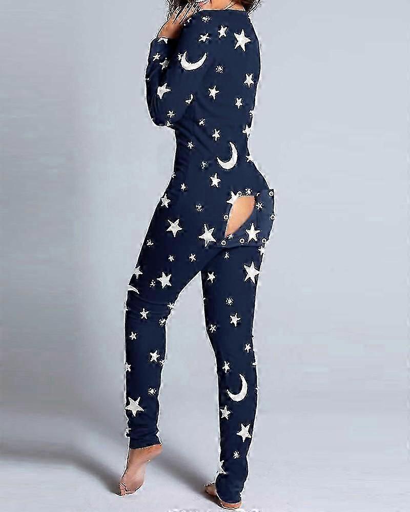 Sexy Pajama For Women Christmas Pajamas New Year Jumpsuit Sleepwear Button-down Front Back Butt Bum Open Ass Flap Jumpsuit Xmas Print Loungewear