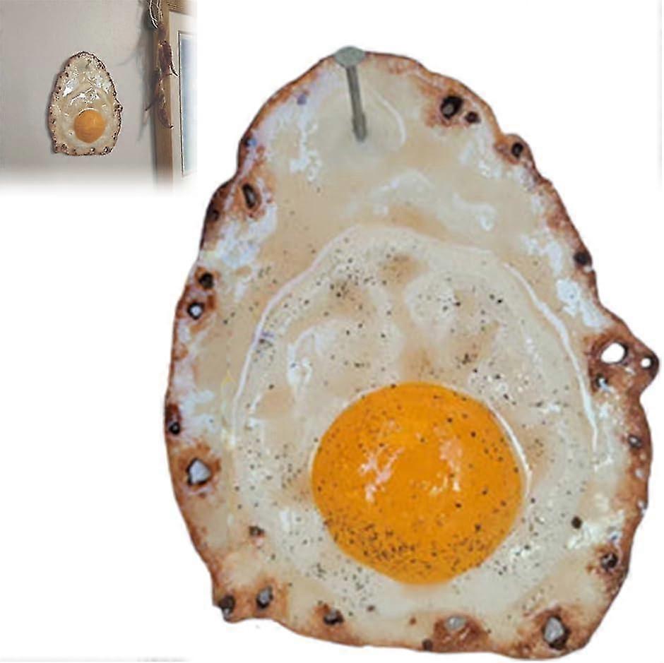 [Great decoration]: Add a playful touch to your kitchen with this unique Fried Egg Hanging on a Nail decoration. It's a fun and creative way to liven up your living space. [High quality]: Crafted from high-quality resin and hand-painted, this egg decoration is built to last and maintain its realistic appearance. [Creative wall art]: This piece of art is not just a decoration; it's a conversation starter. Its realistic design and quirky concept make it a standout addition to any room. [Perfect gift]: Surprise your loved ones with this hilarious and unexpected gift. It's bound to bring smiles and laughter to anyone who receives it, making it the perfect present for family and friends. [Intimate service]: We take pride in the craftsmanship of this unique decor item. Each one is handmade and slightly different, ensuring that you receive a one-of-a-kind piece.