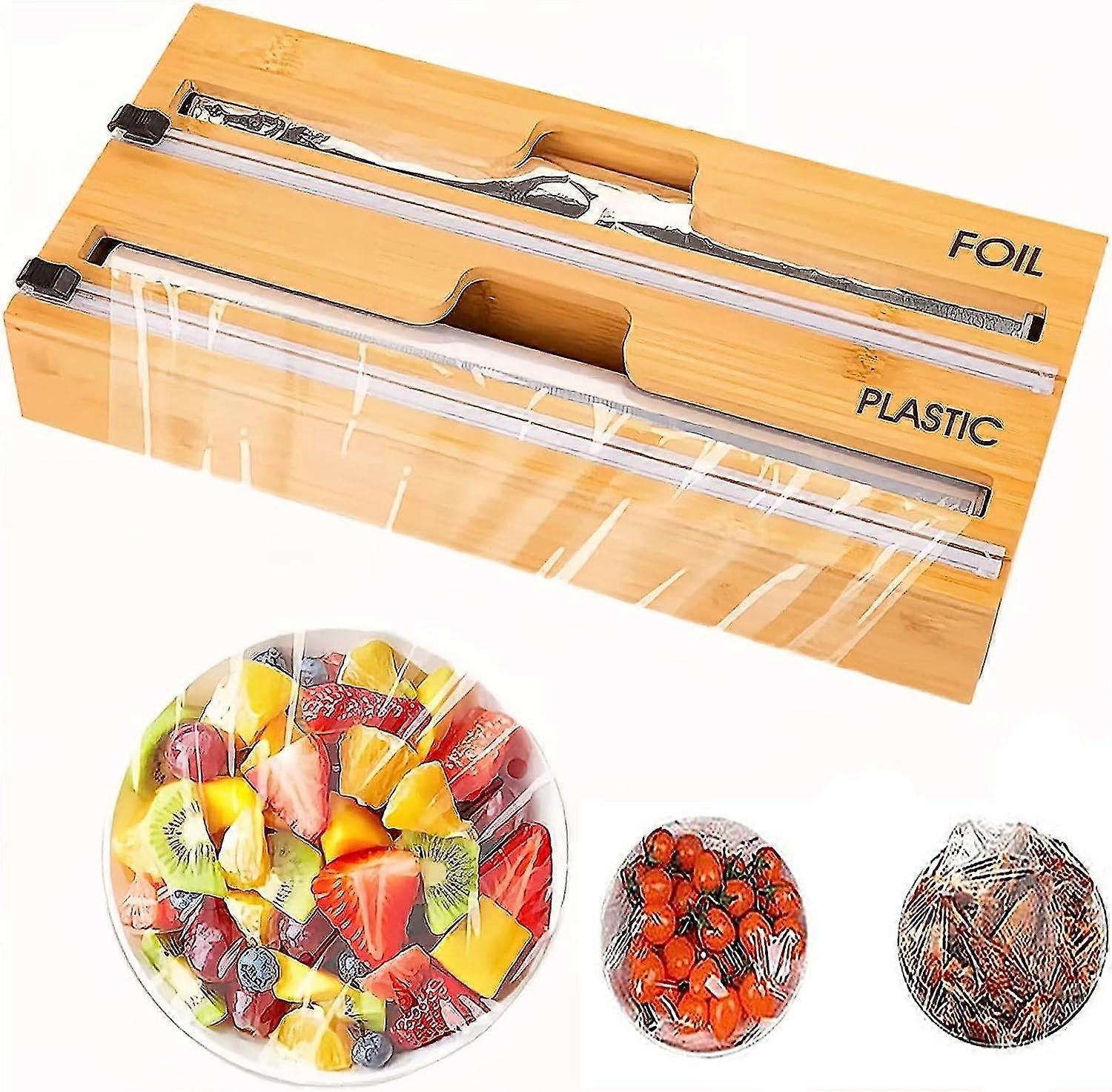 Cling Film Dispenser And Cutter Wrap Dispenser - Aluminum Foil And Wax Paper Dispenser For Kitchen, Bamboo Roll Organizer Holder, Compatible With 12in