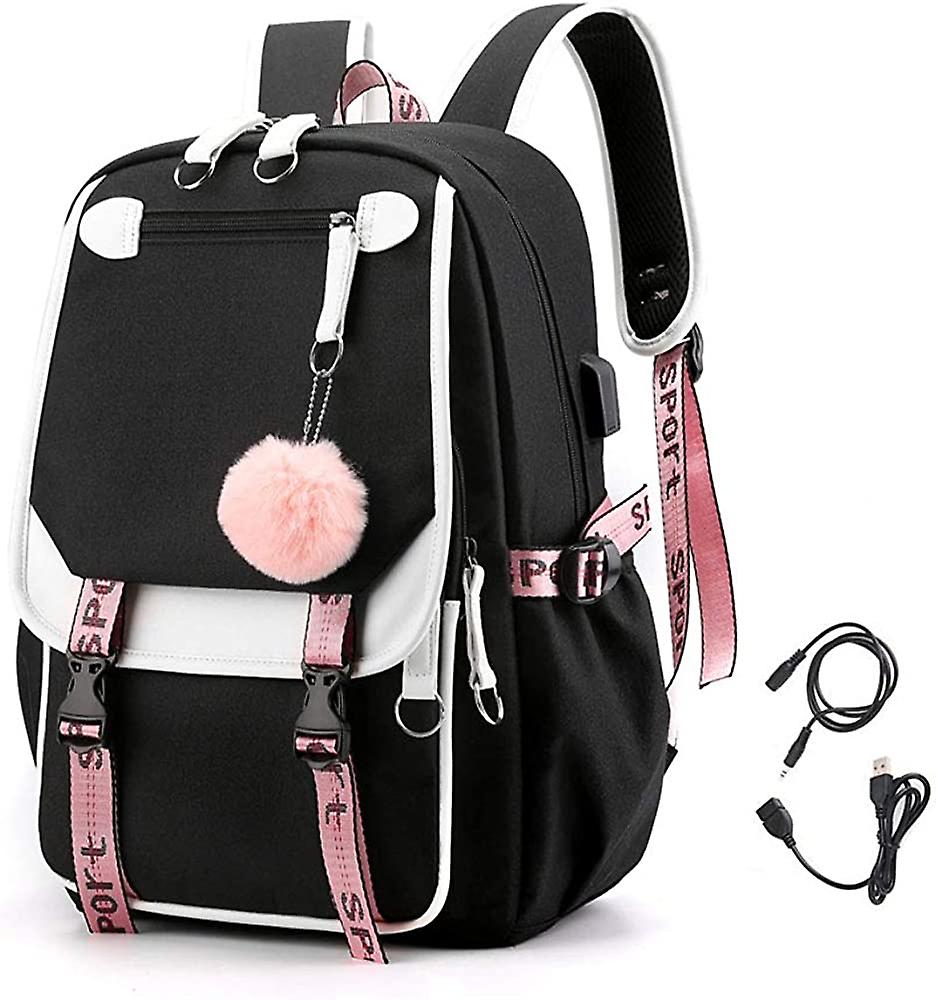 Girl Backpack has USB and Audio Cable Interface Suitable as Student School Bag Laptop Backpack Leisure Backpack